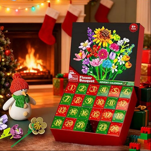 Jeder Tag bringt eine neue, einzeln verpackte Box mit bunten Blumen-Bausteinen. So wird das Öffnen zum täglichen Highlight und hält die Spannung lange aufrecht.