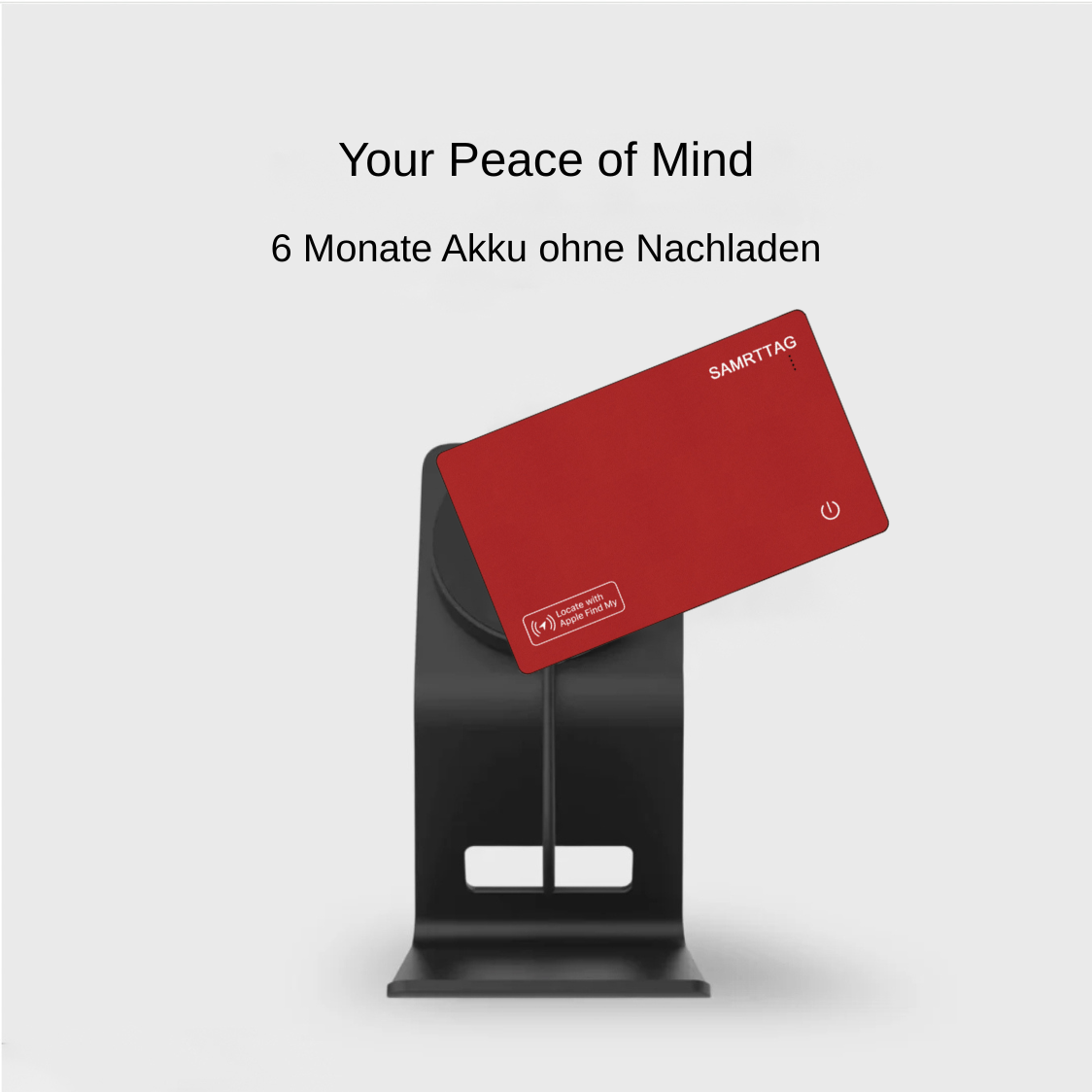 Jede Smarttag-Ladung hält bis zu 6 Monate, danach lädst du bequem induktiv auf. So bleibt dein Tracker immer einsatzbereit – ohne Batteriewechsel oder zusätzliche Kosten.